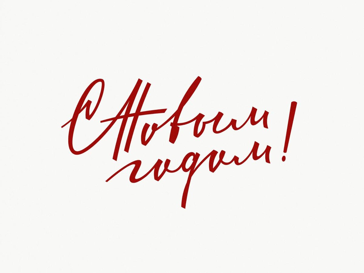 Вторая Новогодняя леттеринг надпись с оформлением в виде псевдосоветской открытки.