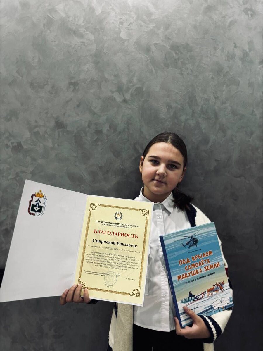 🎬 Дорогие друзья! Хотим поделиться радостью: ученица ДМШ имени Н.А. Котляра Смирнова Елизавета приняла участие во Всероссийском краеведческом конкурсе "Это Родина моя", который проходил в г. Нарьян-Мар. Елизавета презентовала проект "Изучение истории родного края с использованием игровых технологий на занятиях краеведению" и разработала специальный игровой набор "Моя родная Пензенская земля". За оригинальность подхода, непревзойденное усердие и яркое представление материала Елизавета была награждена личной Благодарностью от уполномоченного по правам ребенка в Ненецком автономном округе Галины Николаевны Гуляевой и подарочной книгой Натальи Волковой "Под крылом самолёта: макушка Земли", рассказывающей о подвигах полярных лётчиков. Продолжаем двигаться вперед и радовать вас свежими новостями! 🌞🎯 #ДМШимНАКотляра #КультураПенза #Культура58 #penz_kult