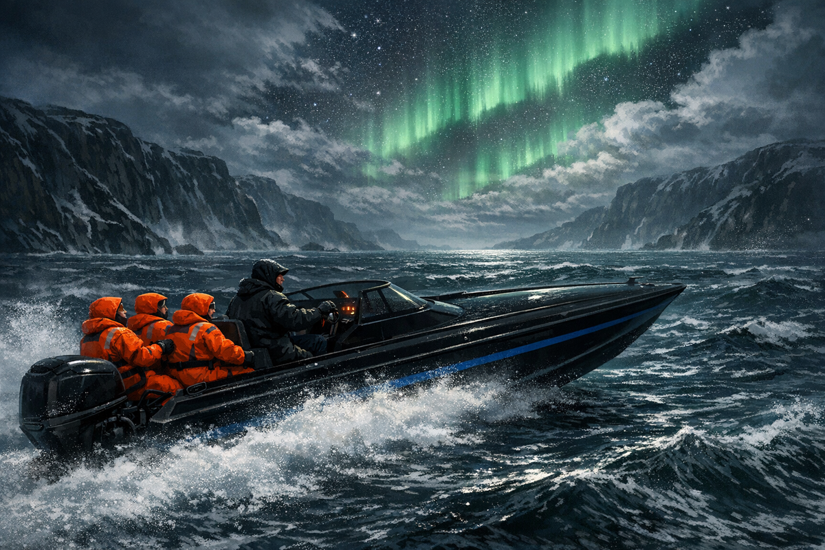 Мотор взревел с низким, рычащим гулом, и катер рванул вперёд, оставляя за собой широкий пенный след в чёрной, маслянистой воде фьорда. Они мчались между мрачных, пологих и кажущихся безжизненными скал, где эхо мотора отдавалось многократным грохотом. Вскоре широкий – почти четыре километра – фьорд закончился, и они вырвались в открытое Баренцево море – бескрайнее, холодное и враждебное.