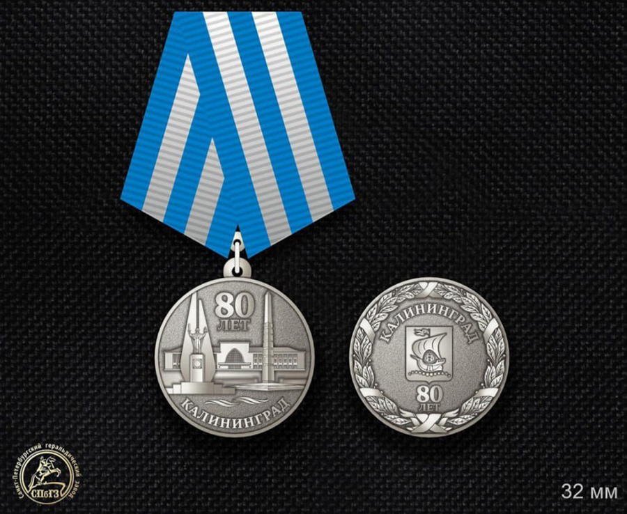Окончательное решение по дизайну юбилейной медали к 80-летнему юбилею Калининграда пока не принято. Один из вариантов разместила в соцсетях пресс-служба горадминистрации. «На лицевой стороне по центру будет изображено здание Южного вокзала — этот архитектурный символ напоминает о первых переселенцах, прибывших на калининградскую землю в 1946 году. Слева от вокзала будет расположен памятник Николаю Чудотворцу и стела памятного знака рыбакам-пионерам — эти символы напоминают о богатых морских традициях края. Справа от вокзала возвышается центральная стела Мемориала 1200 гвардейцам. Этот монумент — символ Победы и военного прошлого города», — говорится в сообщении. Предполагается, что медаль выполнят сплава меди, никеля и цинка, она будет круглой формы диаметром 32 мм, добавили в пресс-службе. На Совет по культуре при губернаторе было представлено два варианта медали. Первый эскиз был подготовлен Санкт-Петербургским геральдическим заводом, а второй калининградской компанией. Петербургский