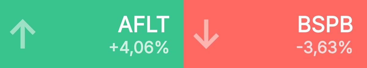 : Аэрофлот • 59,26 ₽ • 4,06% ММК • 28,50 ₽ • 4,03% Алроса • 41,51 ₽ • 2,47% Ростелеком • 62,20 ₽ • 2,30% ГК Самолет • 1 046 ₽ • 2,20% ПИК • 513 ₽ • 2,17% Россети • 0,07 ₽ • 2,13% Северсталь • 987 ₽ • 2,03% ЭЛ5-Энерго • 0,51 ₽ • 2,01% Ростелеком • 63,40 ₽ • 1,90% 🔻 Топ-10 лидеров падения среди крупнейших акций: Банк Санкт • 306 ₽ • -3,63% Циан • 605 ₽ • -2,07% Инарктика • 509 ₽ • -1,24% Московский • 7,38 ₽ • -0,85% ЭсЭфАй • 1 789 ₽ • -0,81% ЮМГ • 824 ₽ • -0,65% Европлан • 556 ₽ • -0,61% Лента • 1 960 ₽ • -0,31% М.Видео • 69,65 ₽ • -0,07% Селигдар • 42,88 ₽ • -0,07%