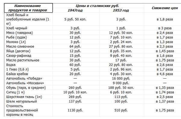 Было время и были подвалы, Было дело, и цены снижали. И текли куда надо каналы, И в конце куда надо впадали. Высоцкий. Декабрь 1947 года ознаменовался сразу двумя историческими для отечественной экономики событиями. 15 декабря Советский Союз первым из бывших участников Второй мировой войны отменил карточную систему на продовольствие. Это потрясающе: к примеру, в Англии, в сравнении с СССР, можно сказать, непострадавшей в войне, карточная система просуществовала до середины 1950-х гг. В остальной Европе ситуация была похожей. А Советский Союз, страна, наиболее пострадавшая в во Второй мировой войне, отменила карточки раньше всех!!! А уже на следующий день, 16 декабря 1947 года, в СССР была проведена денежная реформа; началось не имеющее аналогов в мировой истории, ежегодное снижение цен на продукты и промышленные товары. Ежегодное снижение цен было возможно благодаря тому, что Сталинская экономика функционировала без капиталистических паразитов – посредников и перекупщиков; и происходил