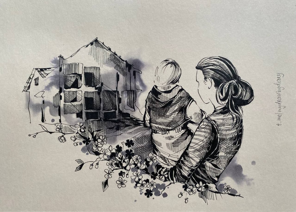 - Мама, расскажи мне про слона. Мамочка, а днём луна видна? Мама, а медведи ночью спят? Мамочка, а как ветра шумят? Мама, а на небе много звёзд? Мамочка, у змей бывает хвост? Мама, почему трава растёт? Мамочка, а дождик как идёт? Мама, можно песенки попеть? Мамочка, опять нельзя шуметь? Мама, поиграй со мной чуть-чуть! Мамочка, а что такое жуть? Мама, что такое суета? Мамочка, а сбудется мечта? Мама, а когда мне будет пять, Я смогу на улице играть? Мама, ну давай поговорим! Мамочка, я вырасту большим? Мама, правда Бог нас не забыл И даёт терпенья нам и сил?" Вместо лампы: солнце иль луна. Раскладушка на двоих одна. Полведра воды, в углу горшок. И подвальной затхлости душок. Мама гладила рукой копну волос: За четыре года сын подрос. Крестик на груди его блеснул. На руках у мамы сын уснул. От войны всегда одна беда. Слава Богу, сын не сирота. Слава Богу, мама рядом с ним. Ради тех, кто ждёт - мы Победим! 💪 Автор: Марина Лесняк, 12.12.2025 Художник: Я вижу #стих_сво 🌐 Vежливые