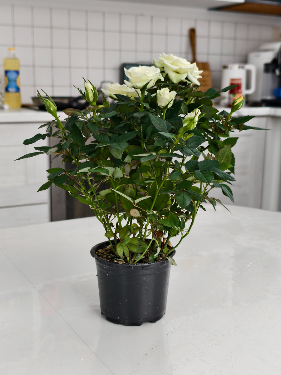 У неё мелкие листья, короткие побеги и полное отсутствие аромата. При этом растение остаётся достаточно требовательным: резкая смена условий, сухой воздух, неправильный полив или нехватка света часто приводят к тому, что роза начинает сбрасывать листья и бутоны уже через несколько дней после покупки. Именно поэтому многие считают её «одноразовой», хотя на самом деле проблема кроется не в растении, а в уходе.