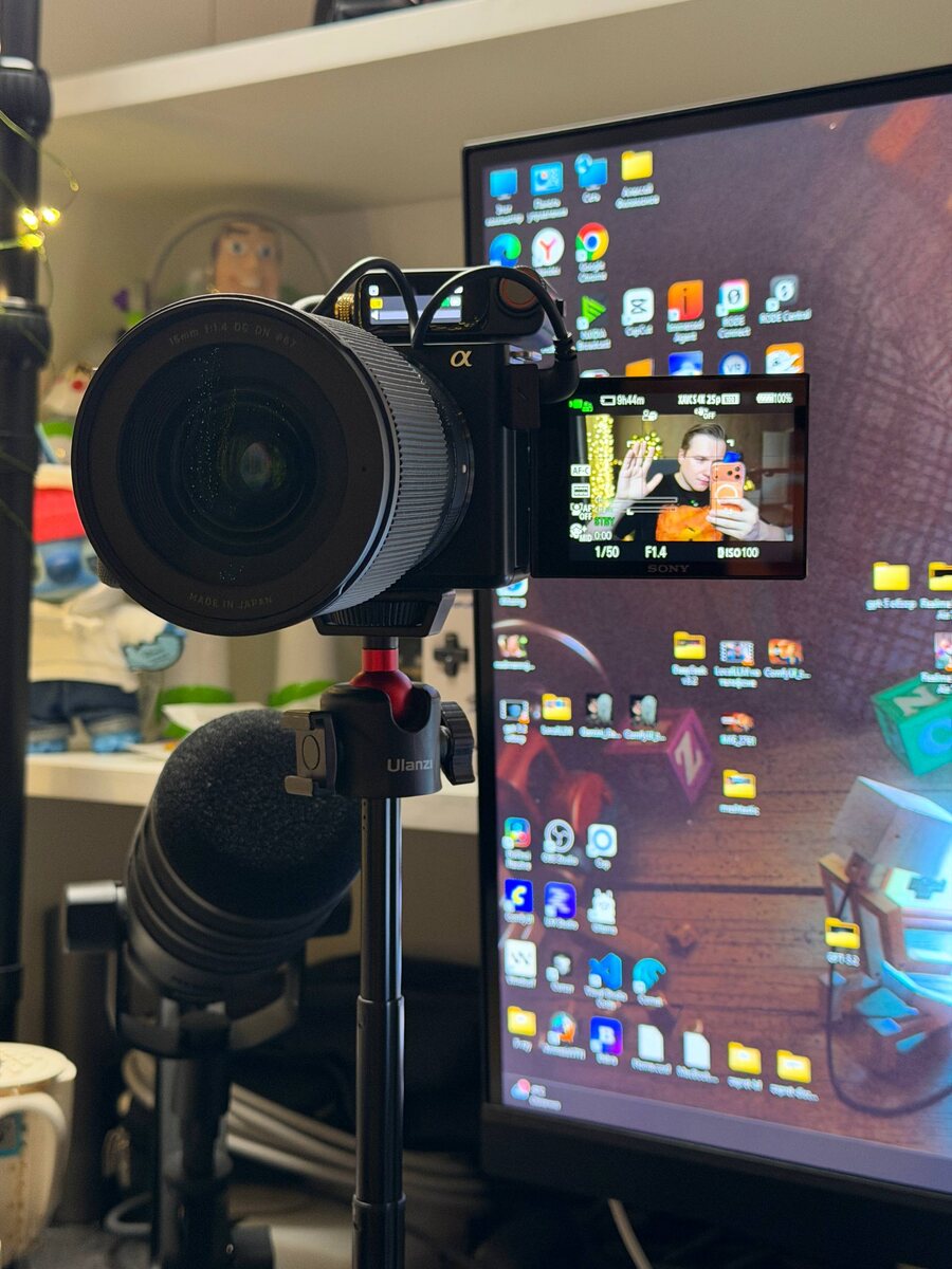 Решил немного апнуть качество картинки, поэтому достал свою Sony ZV-E10. И, честно, уже успел забыть, насколько крутой результат она даёт Последний год в основном снимал на DJI Pocket 3 - он безумно удобный: быстро подключил, нажал кнопку и записал, но решил поиграться с фоном и картинкой👍 Техноманьяк