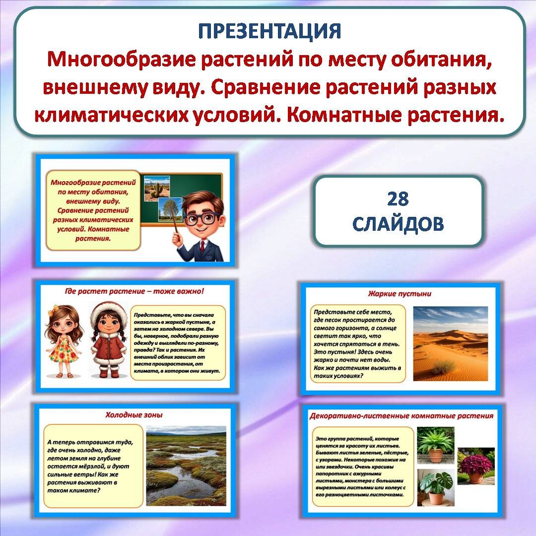 Презентация «Многообразие растений по месту обитания, внешнему виду. Сравнение растений разных климатических условий. Комнатные растения»