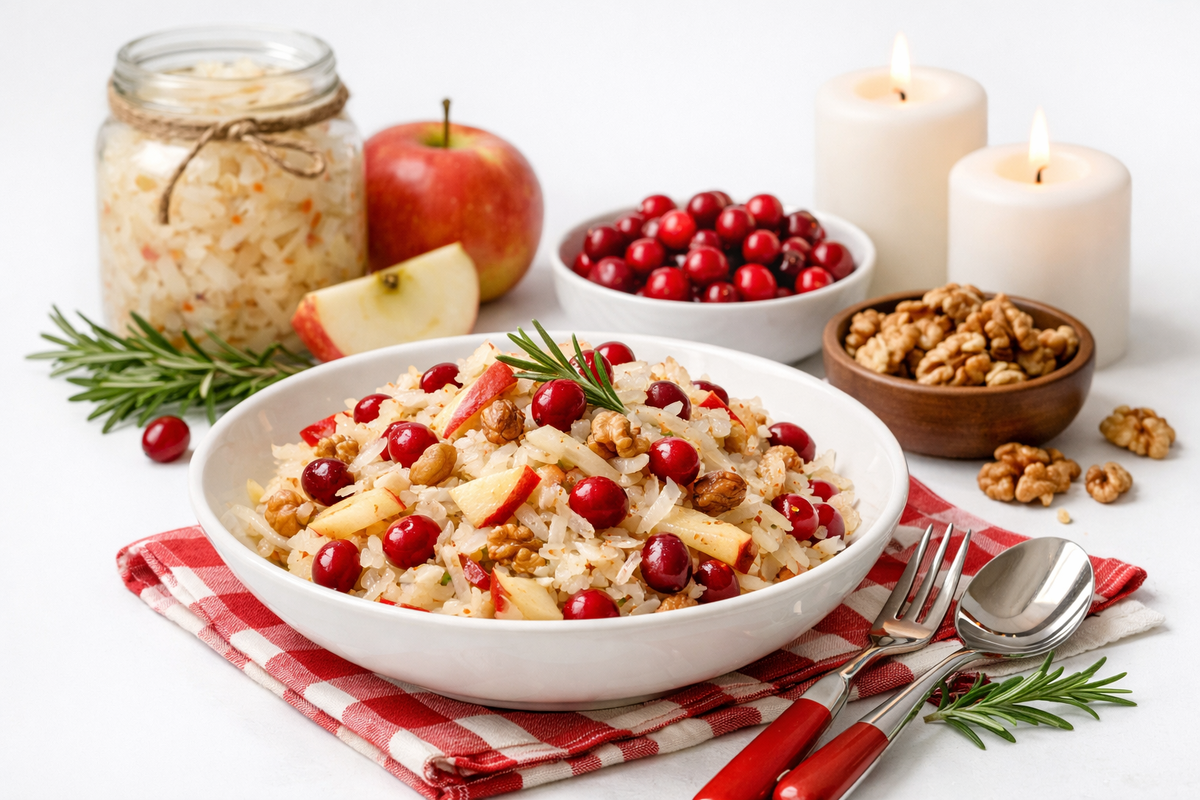 Этот салат я всегда делаю, когда хочется чего-то простого, но с характером. Он выглядит нарядно, готовится за считанные минуты и отлично заходит и к горячему, и как самостоятельная закуска. Квашеная капуста здесь играет не роль фона, а звучит по-настоящему ярко – с кислинкой, сладостью и хрустом.