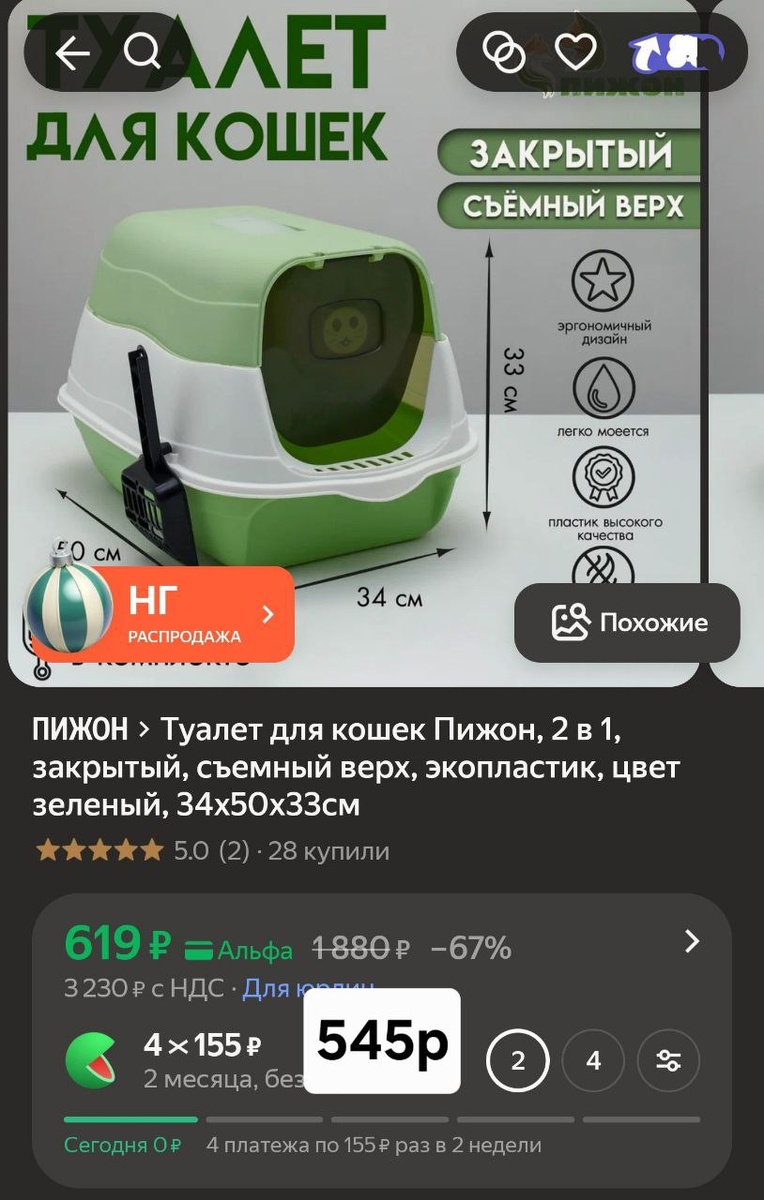 545р (Я.Пэй + промокод) Промокод: BYSIMA10 - найдите его ниже в карточке товара, активируйте подписавшись на магазин и примените в корзине. ➡️Получить карту Я.Пэй ➡️Подписаться на канал ℹ️Закрытый, съемный верх, экопластик, цвет зеленый, 34x50x33см