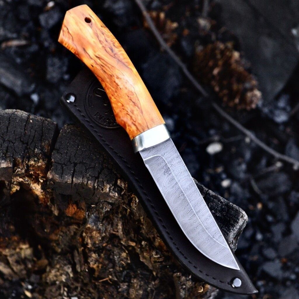 Нож Бурундук, сталь Дамаск, рукоять карельская береза