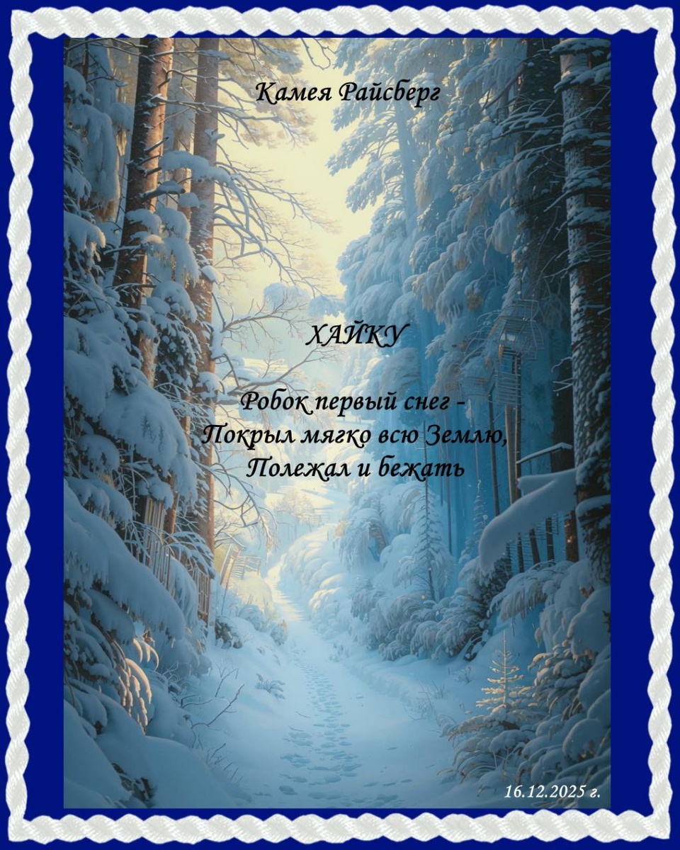 снеге, морозном воздухе, а может быть о запахе хвои. А я решила не ограничиваться одной открыткой, а создать две. Смотрите, что у меня из этого вышло 🤗🤗🤗 ❤️ Ставьте отметку о прочтении 😉 ✍️ Делитесь своими впечатлениями в комментариях 🤗🤗🤗 ❗ Рисунки выполнены ИИ -Кандинский #kr_хайку #kr_стихи #хайку #стихи #поэзия #ОткрыткаОжидания2026