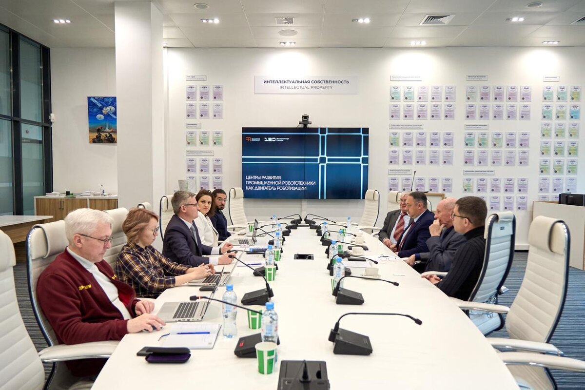 Сегодня представители ЮРГПУ им. М.И. Платова посетили Центр развития промышленной робототехники Университета Иннополис. На встрече со специалистами ЦРР и директором Николаем Смирновым они представили результаты своей работы, поделились кейсами по внедрению робототехнических решений и выступили с презентацией на тему «Отечественные инструментальные средства для автоматизации серийного производства изделий авиационной и ракетной техники». Представители рассказали об импортозамещении основного оборудования, комплексной автоматизации и разработанной системе САПР-намотки. В составе делегации присутствовали: 🟡Савин Александр Геннадьевич, ведущий научный сотрудник; 🟡Душенко Александр Григорьевич, ведущий инженер; 🟡Дьяченко Владимир Борисович, зав. кафедрой «Автоматика и телемеханика»; 🟡Алтунян Лермонт Левикович, ведущий инженер. Впечатлениями от встречи поделился Николай Смирнов, директор ЦРР Университета Иннополис: «Эта встреча наглядно показала мощный потенциал научно-промышленной