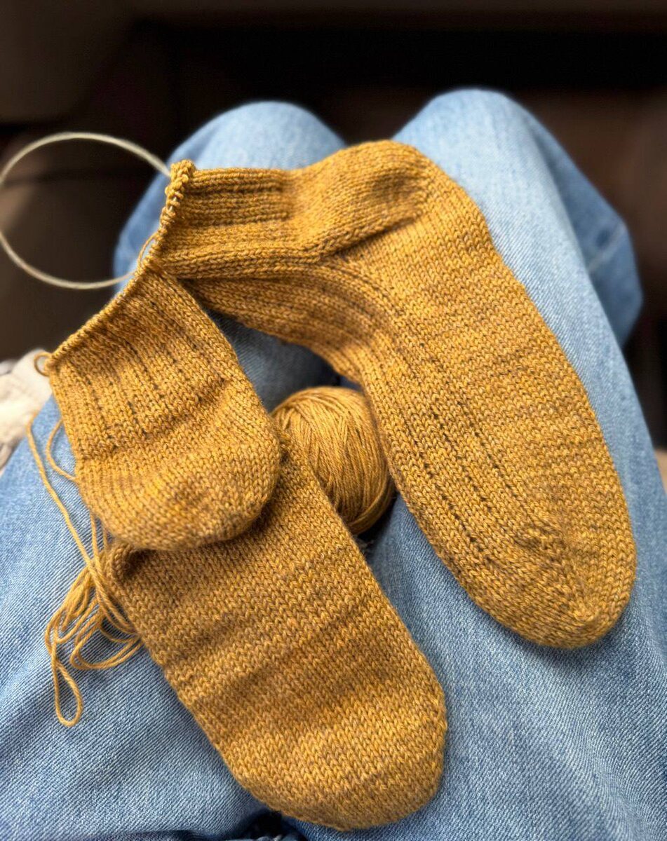 Мы мою позицию знаете: понятный алгоритм и приятный процесс. В носках я выбрала для себя вязание от мыска (так мне удобнее) и одновременное вязание двух сразу (точно будет пара, причем одинаковая). У нас с вами есть чаты, где мы вяжем: — носки с пяткой «бумеранг» и клином подъема — носки с пяткой «стронг» — носки с гибридной пяткой «французская + подкова». Носки на фото связаны именно с ней. Попробуйте все и выберете свой любимый вариант. А если не пробовали вязать два сразу от мыска — тем более попробуйте.