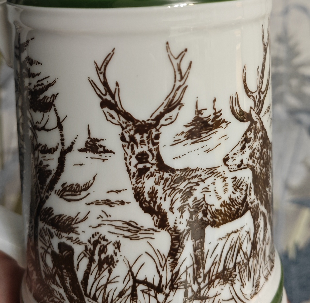Это вышло совершенно случайно, такого я точно не планировала. Увлёкшись винтажным фарфором, я стала читать статьи на эту тему. Любоваться чужими сокровищами, узнавать что-то новое. Как вдруг неожиданно увидела такое, что никогда бы не подумала, что мне понадобится, но в то же мгновение поняла, что жизнь мне без этого не мила! Хочу-хочу-хочу! Оно было большое! Оно было фарфоровое! И ОНО БЫЛО С ОЛЕНЯМИ!!! Я тут же бросилась искать. Сначала попадались слишком дорогие, но поискав подольше, я нашла отличный вариант. Итак, друзья, я счастливый обладатель винтажной фарфоровой пивной кружки😄😍 С оленями!!! Она нереально красивая! Сочетание цветов идеальное, рисунок шикарный! Это была любовь с первого взгляда! Вот уж никогда бы не подумала, что мне в жизни так не хватает пивной кружки😄 Создатель этой красоты - немецкий производитель Freiberger, который работает до сих пор. Судя по клейму кружка была выпущена в период с 1970г по 1995г. Посуда такого объема не обязательно должна использо
