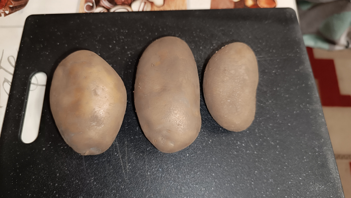 - Картофель. Взял килограмма три для начала. Клубни выбирал крепкие, без гнили. Гниль нам не нужна, она испортит вкус.