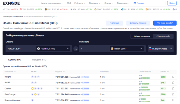 Особенно остро стоит вопрос о том, где купить биткоин в России легально и безопасно. К счастью, современные технологии на страже интересов инвесторов. Например, с помощью независимого мониторинга Exnode любой пользователь может в несколько кликов проверить реальные отзывы и честные рейтинги сотен обменников, чтобы выбрать по-настоящему надежного партнера. Это сводит риски к минимуму и открывает путь к безопасному входу в мир криптовалют.