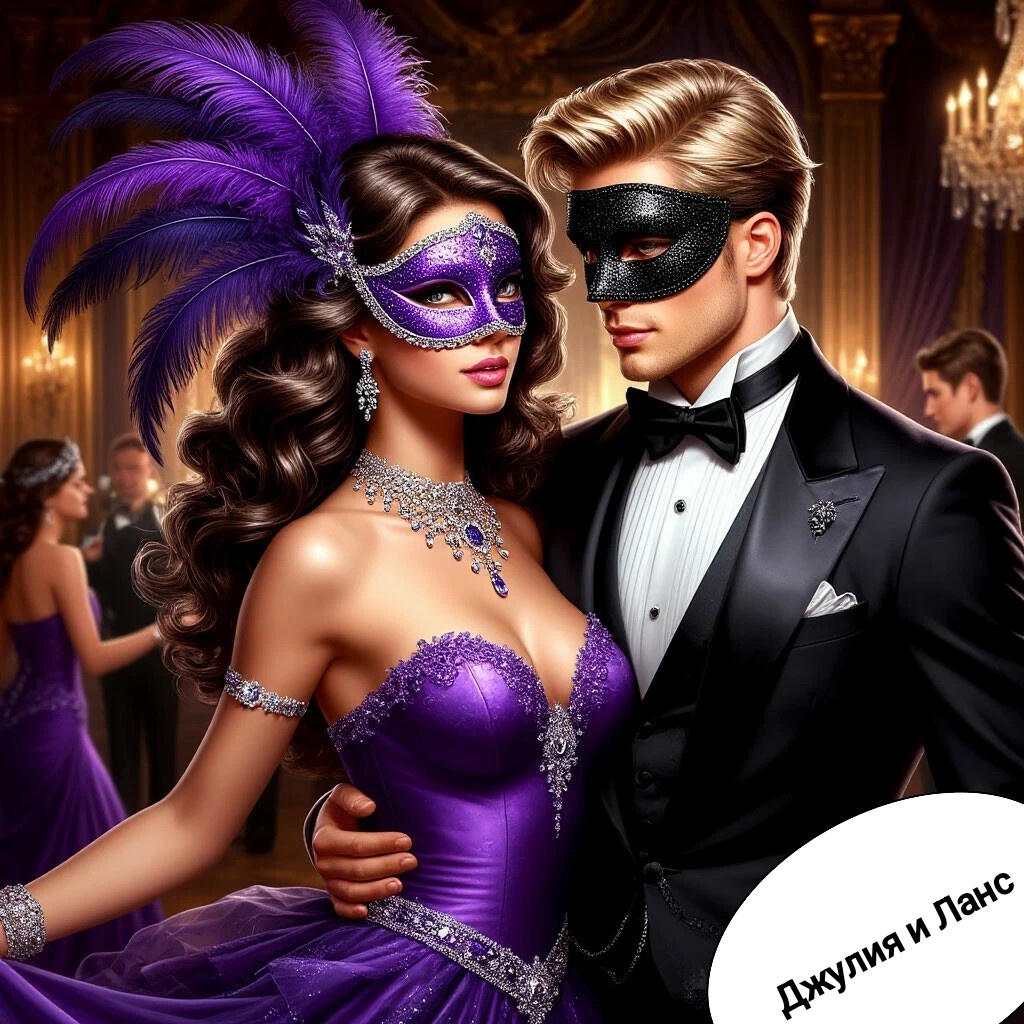 Джулия предстала перед толпой юристов, их родственниками и друзьями бок о бок со своим мужем. И если бы не Ричи, которого даже при наличии маски выдавала широкая неповторимая улыбка, то Джулию вряд ли кто-нибудь узнал. Её глаза скрывала маска зауженная к вискам с твёрдыми темно-сиреневыми пёрышками. Локоны аккуратно лежали на плечах и закрывали открытую спину. На шее красовалось невероятно красивое колье с камнями. Из-за корсета Джулии было непросто дышать, но она надеялась справиться с этими неудобствами. Она создала это платье сама, чем очень гордилась.