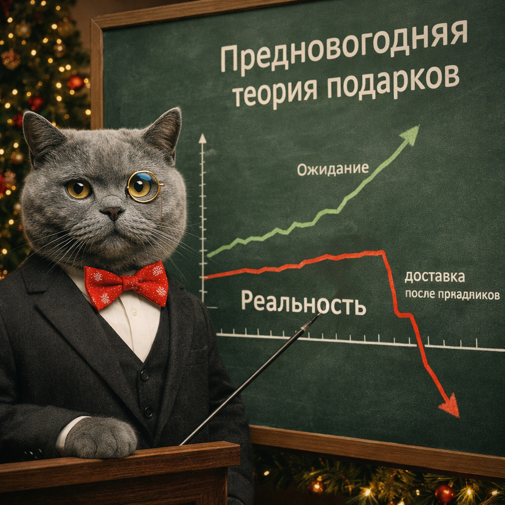 С научной точки зрения это называется эффект предновогодней иллюзии — когда ожидания систематически переоцениваются, а реальность стабильно недооценивается. Коты же называют это проще: «Опять одно и то же».