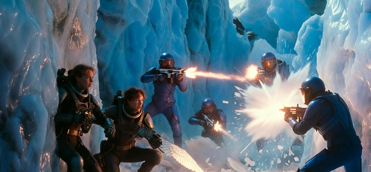 «Якоря, Виктор, сейчас!» — закричала Ирина, отскакивая за ледяную колонну и доставая своё оружие — компактный эмиттер, вызывающий локальные временные стазы. Виктор, бледный от ужаса, но собранный, швырнул три диска «ледяных якорей» в разные стороны. Те с шипением вплавились в лёд и замигали ровным зелёным светом. Битва началась.