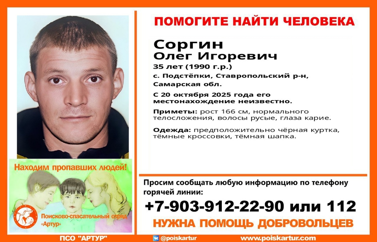 Пропал #Соргин Олег Игоревич, 35 лет, с. #Подстёпки, Ставропольский р-н, #Самарская_область С 20 октября 2025 года его местонахождение неизвестно если у вас есть сведения, которые могут посодействовать поиску,