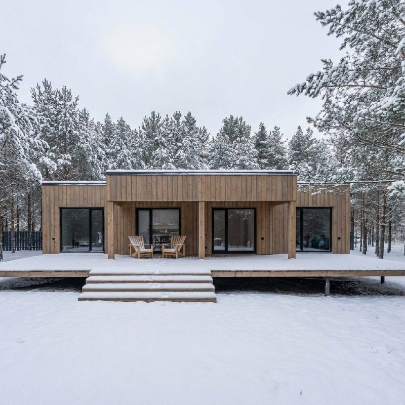 На фото модель Скаут67 или Скаут61. Сегодня поговорим про преимущества в конструктиве. Террасы и веранды Из импрегнированной доски скрытым монтажом на саморезы с антикоррозийным покрытием. Импрегнация — глубокая обработка специальными пропитками и антисептиками для защиты от плесени, насекомых, влаги и ультрафиолета. Надежный и долговечный каркас, который прослужит более 100 лет Жесткие полы и отсутствие эффекта батута. За счет увеличенного сечения лаг и уменьшенного шага лаг в полах, применения двух слоев переклеенного между собой листового материала Сетка для защиты от грызунов По умолчанию под всеми нашими домами и банями мы укладываем мелкоячеистую оцинкованную сетку, защищающую конструкцию от грызунов. Экономия на фундаменте Наши модули изначально имеют жесткий конструктив, поэтому нет необходимости перевязывать свайное поле швеллером или двутавром. Все окна и двери в наших домах — деревянные Во-первых, это красиво и натурально. Во-вторых, они обладают прекрасными тепло- и