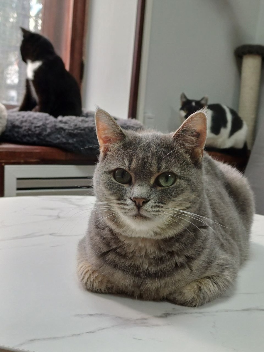 Серая кошка с зелёными глазами. Та самая, которая встречает всех у двери, будто хозяйка этого мира. Та самая, что ловит мышек в ноутбуке — и делает это с серьёзным, сосредоточенным видом. Зоя активная, умная, любознательная. Ей важно быть рядом с человеком, участвовать во всём, что происходит, наблюдать, помогать (по-кошачьи) и быть в центре жизни. Это кошка-компаньон, кошка-характер, кошка-личность. Сейчас Зоя живёт в котопространстве «Муррдовия», но это место было временное. Здесь подробности https://vk.ru/wall-87394963_101616 Мы ищем для Зои дом или ответственную передержку. Человека, который оценит её ум, энергию и зелёный взгляд, в котором будто всегда есть вопрос: «Ну что, чем займёмся дальше?» Если вам нужна кошка, с которой не скучно — пишите нам в сообщения группы. Возможно, Зоя уже выбрала вас 🐾