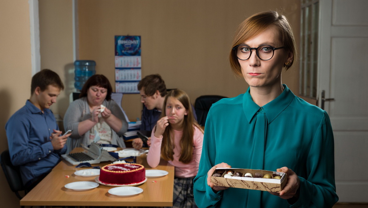 Татьяна объясняла про акты. Потом про ключи от сейфа. Потом про пароли поставщиков. Люди ели её дорогой торт за 4800, пили чай и говорили только о работе. Ни одного тоста. Ни одного воспоминания.