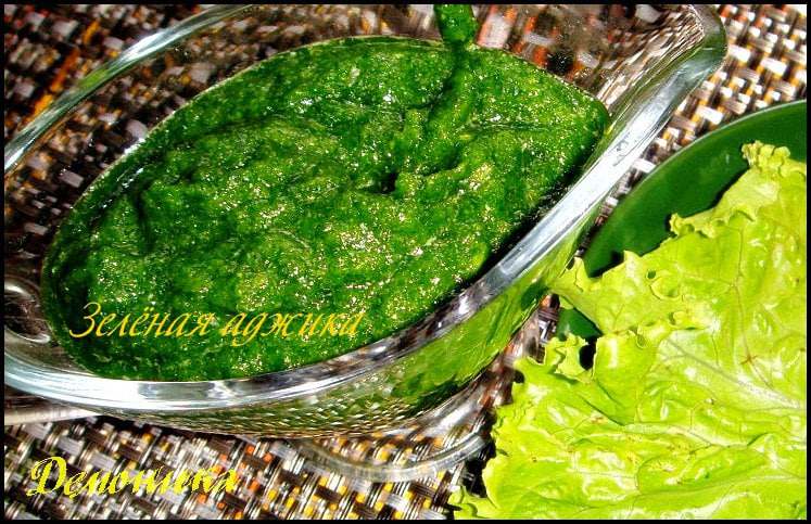 Французская пословица говорит, что с соусом можно съесть и подошву. С этой аджикой можно съесть и тарелку, на которой лежит подошва))) Вспомнил, что я жил на Северном Кавказе, и решил познакомить вас с одной из приправ. Вкусно, ароматно, подходит к мясу, рыбе, используется как заправка для первых блюд, можно использовать вместо соли с овощами, украсит любое блюдо новыми вкусовыми оттенками. А как вкусно намазать на кусочек хлеба с маслом... Готовится очень быстро. Сделайте - не пожалеете! Нам понадобятся: Перец зеленый острый — 4 шт Кинза (свежая) — 4 пуч. Чеснок — 8-10 зуб. Соль (приблизительно) — 1 ст. л. 1. Очистить чеснок, удалить из перцев семена, отрезать хвостики. 2. Сложить всё в блендер и пюрировать. Можно пропустить через мясорубку. 3. Круто посолить. Приблизительно 1 столовая ложка без верха. Если долго хранить не собираетесь, соли можно и поменьше. Смело пробуйте! Вкус не настолько ядрёный). Вот и всё, собственно. Можно сложить в баночку и использовать по мере необходимости