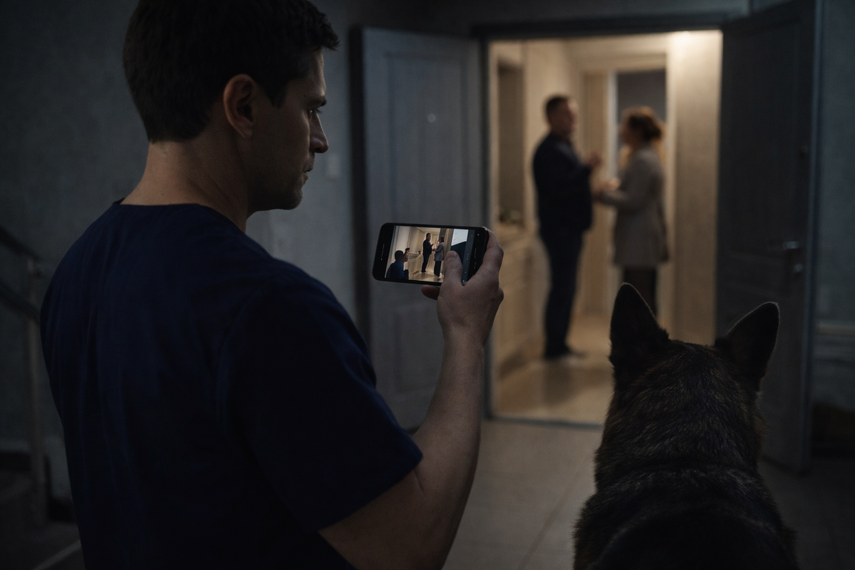 — Я… я поставила камеру в коридоре, — сказала она шёпотом. — Чтобы… понимать… почему он нервничает. И…