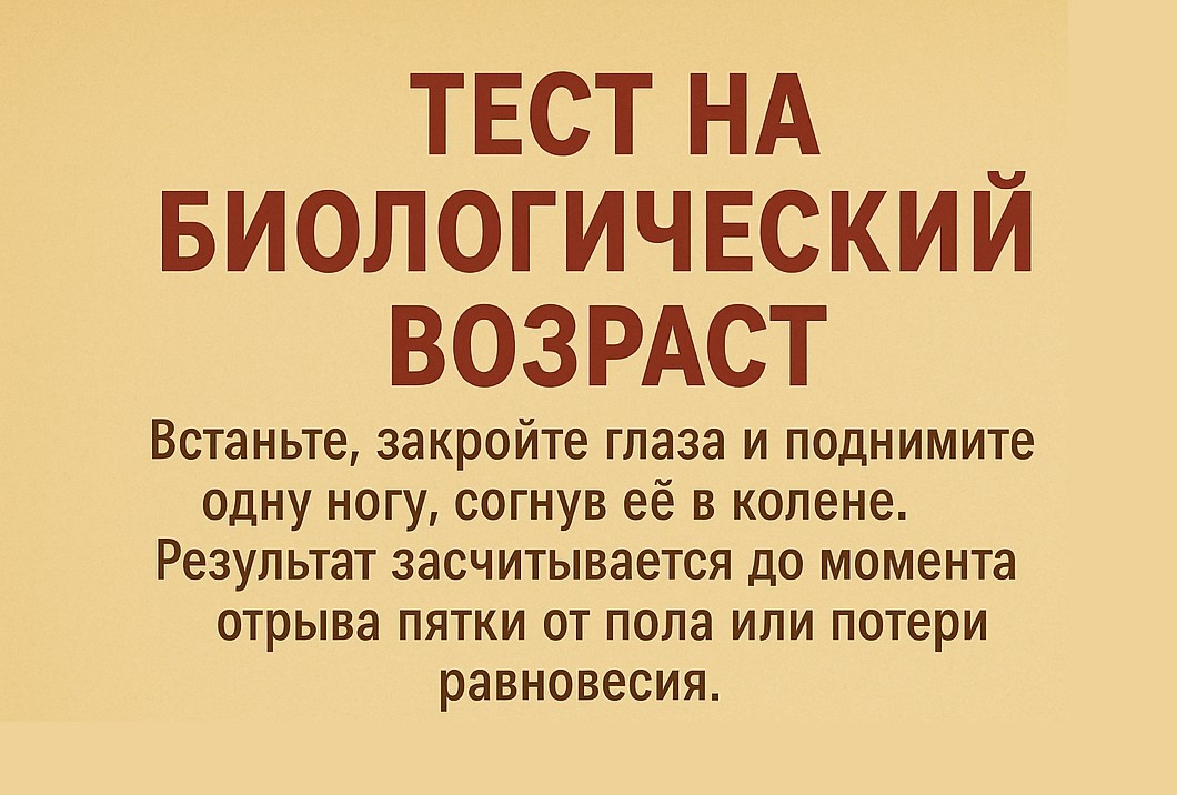Приветствую на канале «Здоровый Дух»! В интернете часто встречается простой тест: закрыть глаза, встать на одну ногу и посмотреть, сколько секунд удастся простоять. Часто этот тест подают как «измерение биологического возраста». Звучит и выглядит загадочно, поэтому давайте разберёмся спокойно и честно, что этот тест действительно отражает. Этот тест показывает только способность удерживать равновесие. И на неё влияет масса бытовых факторов: Никакого точного «биологического возраста» он не вычисляет - и не должен. Между тем, его ценность от этого не исчезает. С годами именно чувство равновесия и способность балансировать начинают играть главную роль в ежедневной активности. Когда они снижаются: Это как индикатор: организм подсказывает, что ему нужно чуть больше внимания. Есть крупные наблюдательные исследования, в которых учёные следили за людьми старше 50 лет многие годы. И они заметили интересный факт: люди, у которых хуже равновесие, чаще сталкиваются с проблемами со здоровьем в буду
