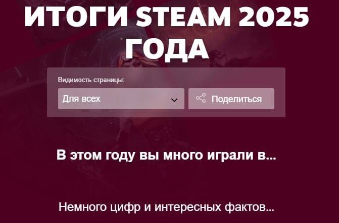 🔴 Steam дропнул персональные итоги года — можно посмотреть любимые игры, достижения и все покупки.