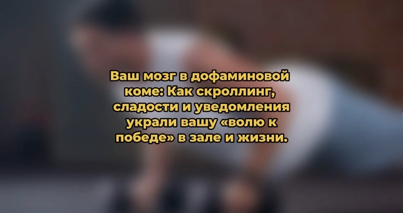 Вы не можете начать тренировку без часового скроллинга. Вы заедаете скуку чипсами, а работу — десятым кофе. Цели остаются целями. Знакомо? Это не лень. Это ваш мозг, подсаженный на дешёвый дофамин, как наркоман на дозу. И он больше не хочет тяжелой, но ценной «работы» — реальных достижений, глубоких отношений, сложных тренировок. Пора объявить цифровой и пищевой детокс. 💥