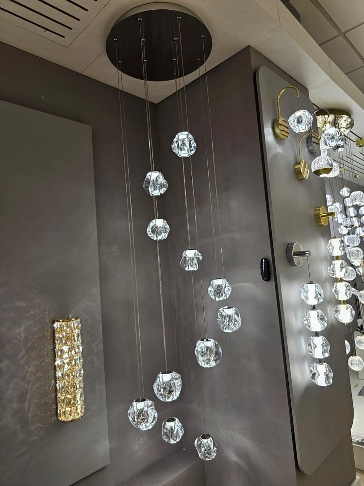 : ✨ невероятно красивые плафоны необычной формы в виде сжатого камня; 💡 материал плафона - высококачественный акрил фирмы Mitsubishi (Япония), который обладает великолепными светопреломляющими и светоотражающими свойствами; 💎 100% имитация хрусталя – характерные переливы, сверкание, идеальная прозрачность.