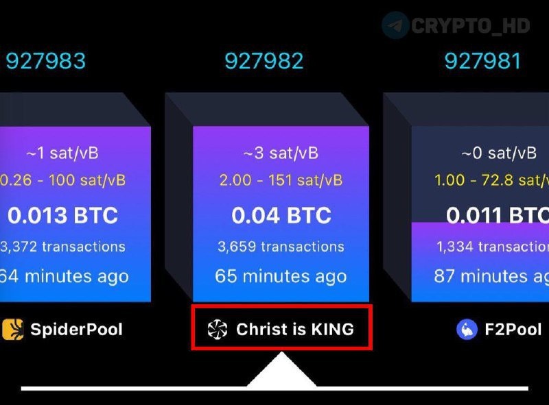 🤨 Особо религиозный майнер назвал блок BTC – «Christ is KING» (Христос – Царь).