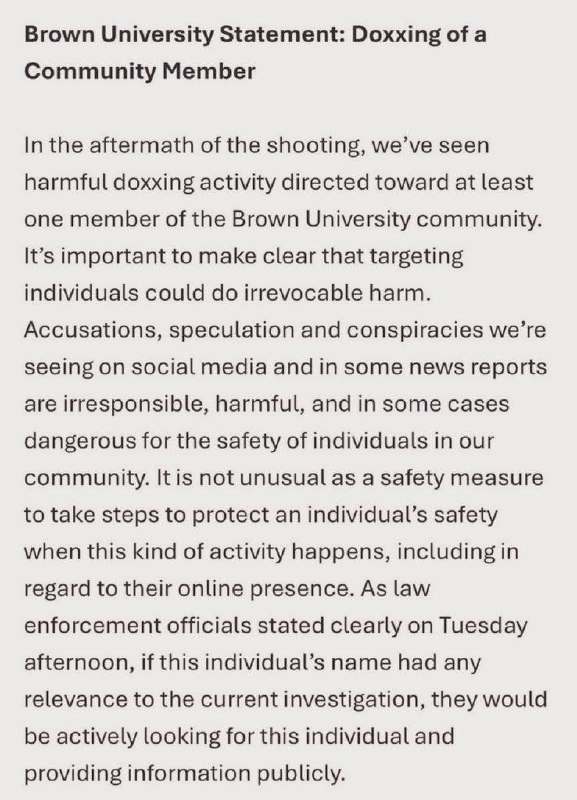 ⚡Brown Uni says ‘HARMFUL DOXXING activity’ on a member of community