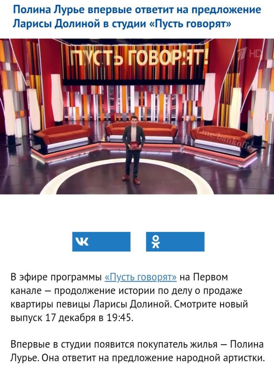 Полина Лурье пригласили на шоу «Пусть говорят», анонсировано на первом канале