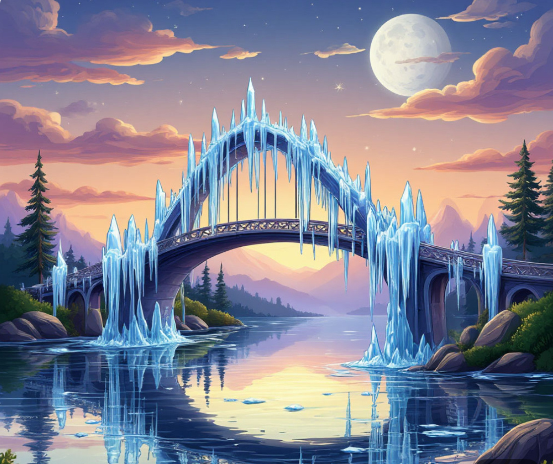И тогда из воды, из света утреннего солнца и отблеска вечерней луны, поднялся Мост. Он был соткан из сосулек и солнечных зайчиков, из упругих плетёных лучей и прохладного лунного шёлка. Он пел на ветру тихой песней признательности. Это был Мост Благодарности — не к чему-то, а за всё.