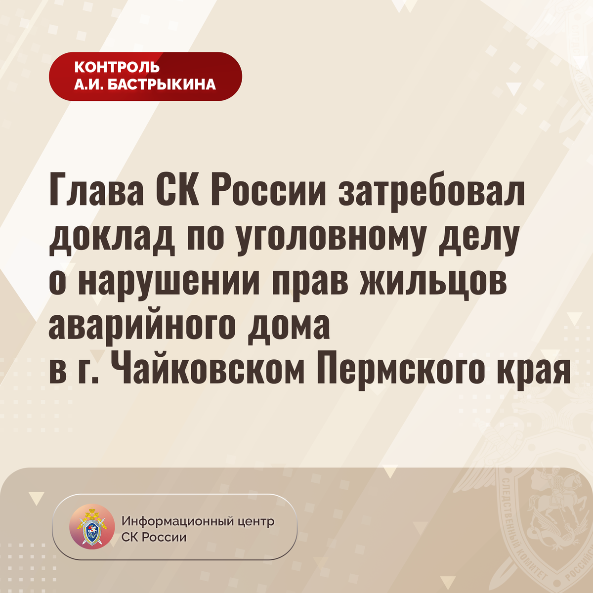 Глава СК России затребовал доклад по уголовному делу о нарушении прав жильцов аварийного дома в г. Чайковском Пермского края