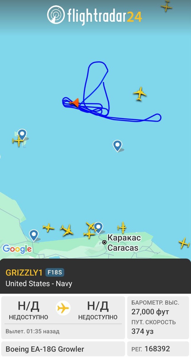 минуты в непосредственной близости от побережья Венесуэлы. Каракас поднял истребители F-16A и Су-30МК2В для попытки пресечения потенциальных провокаций со стороны США. Экипажи EA-18G подавляют бортовые РЛС венесуэльских истребителей посредством перспективных комплексов РЭБ AN/ALQ-249 Increment 1 NGJ-MB и Increment 3 NGJ-HB, которые были замечены на узлах подвески "Гроулерлов" после передислокации в Пуэрто-Рико. Также севернее над Карибским морем заступил на боевое дежурство палубный самолёт ДРЛОиУ E-2D Advanced Hawkeye с РЛК кругового обзора AN/APY-9, что может свидетельствовать о начале подготовки палубной авиации ВМС США к операции по завоеванию господства в воздухе над венесуэльскими Су-30МК2В и F-16A. UPD: На этом фоне Трамп заявил, что выступит с обращением к нации в четверг, в 5.00 по московскому времени, но не анонсировал повестку. https://dzen.ru/id/6425916a1950720421f18802