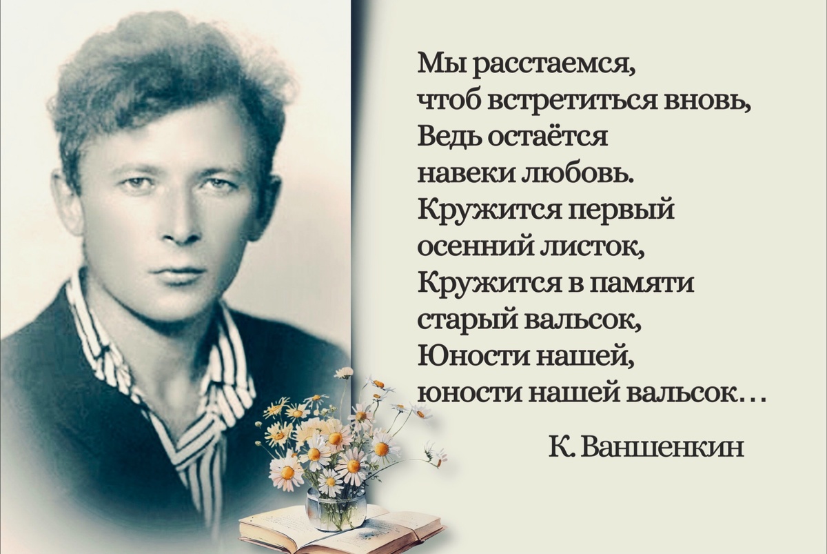 Сегодня стихи Константина Ваншенкина называют неактуальными, несозвучными времени. Да неужели? Стоит только произнести названия «Я люблю тебя, жизнь!», «Алеша», «Как провожают пароходы», и сама собой в голове возникает мелодия; простые, не отягощенные словесными вензелями строки наизусть нижутся на нитку памяти. А насчет несовременности… Пять лет назад, в самые первые дни уже забытой нами пандемической трагедии, охватившей весь мир, полиция финского города Оулу опубликовала видеозапись финской версии песни «Я люблю тебя жизнь». Песню, пришедшую на помощь людям, исполнял на опустевших улицах города оперный певец и полицейский Петрус Шродерус.