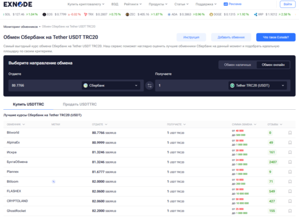 Для удобного и безопасного выбора подходящего сервиса можно воспользоваться Exnode — мониторингом обменников криптовалют, где собраны проверенные платформы с актуальными курсами, резервами и отзывами. Это позволяет принять взвешенное решение и Купить USDT за рубли онлайн с максимальной уверенностью в результате.