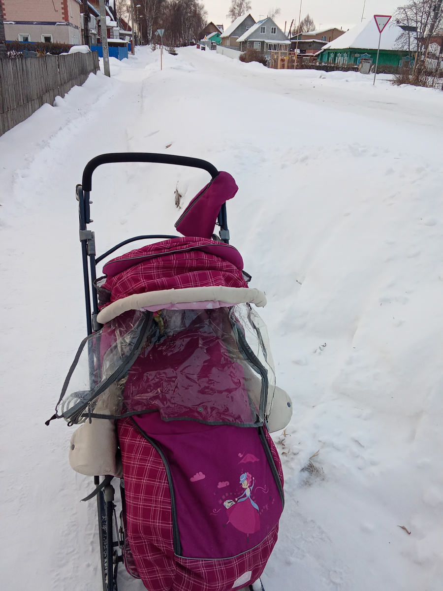 Вчера ходили на занятие Юлианы. Добирались на санках.