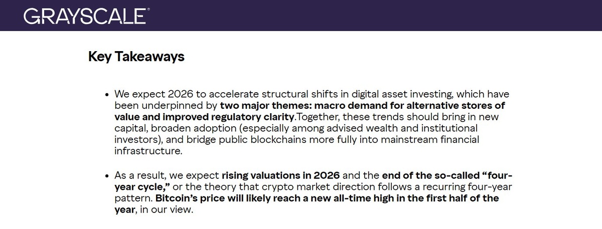 π ΠΠ½Π°Π»ΠΈΡΠΈΠΊΠΈ Grayscale ΠΏΡΠΎΠ³Π½ΠΎΠ·ΠΈΡΡΡΡ, ΡΡΠΎ ΠΊ ΠΏΠ΅ΡΠ²ΠΎΠΉ ΠΏΠΎΠ»ΠΎΠ²ΠΈΠ½Π΅ 2026 Π³ΠΎΠ΄Π° ΠΠΈΡΠΊΠΎΠΉΠ½ Π΄ΠΎΡΡΠΈΠ³Π½Π΅Ρ Π½ΠΎΠ²ΠΎΠ³ΠΎ ΠΈΡΡΠΎΡΠΈΡΠ΅ΡΠΊΠΎΠ³ΠΎ ΠΌΠ°ΠΊΡΠΈΠΌΡΠΌΠ°. ΠΡΠ½ΠΎΠ²Π½ΡΠ΅ ΡΠ°ΠΊΡΠΎΡΡ β ΡΠ°ΡΡΡΡΠΈΠΉ ΡΠΏΡΠΎΡ Π½Π° Π°Π»ΡΡΠ΅ΡΠ½Π°ΡΠΈΠ²Π½ΡΠ΅ Π°ΠΊΡΠΈΠ²Ρ ΠΈ ΡΠ»ΡΡΡΠ΅Π½ΠΈΠ΅ ΡΠ΅Π³ΡΠ»ΡΡΠΎΡΠ½ΠΎΠΉ ΡΡΠ½ΠΎΡΡΠΈ Π² Π‘Π¨Π ΠΏΠΎΡΠ»Π΅ ΠΏΠΎΡΠ²Π»Π΅Π½ΠΈΡ ΡΠΏΠΎΡΠΎΠ²ΡΡ