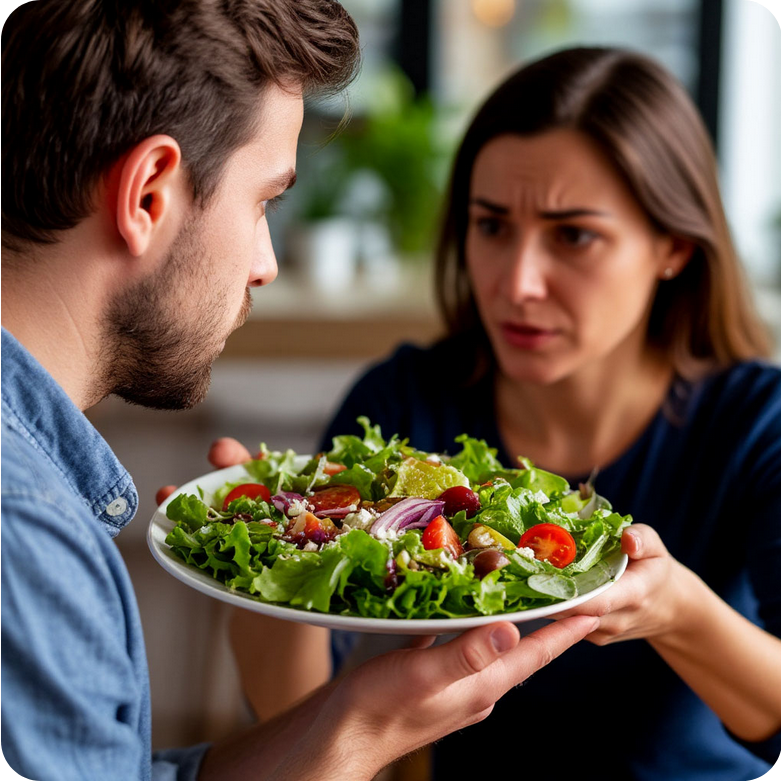 Алексей, не помня себя от ярости, схватил первую вещь, которая попала под руку — большую салатницу с ещё недоеденным "Оливье".