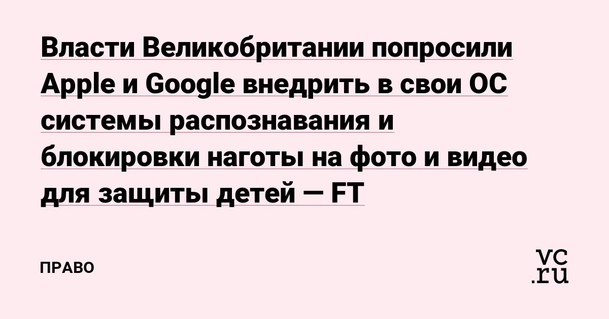 π Π‘ΡΡΠ»ΠΊΠ°: https://vc.ru/legal/2652170-velikobritaniya-trebuet-ot-apple-i-google-blokirovat-nagotu?from=rss