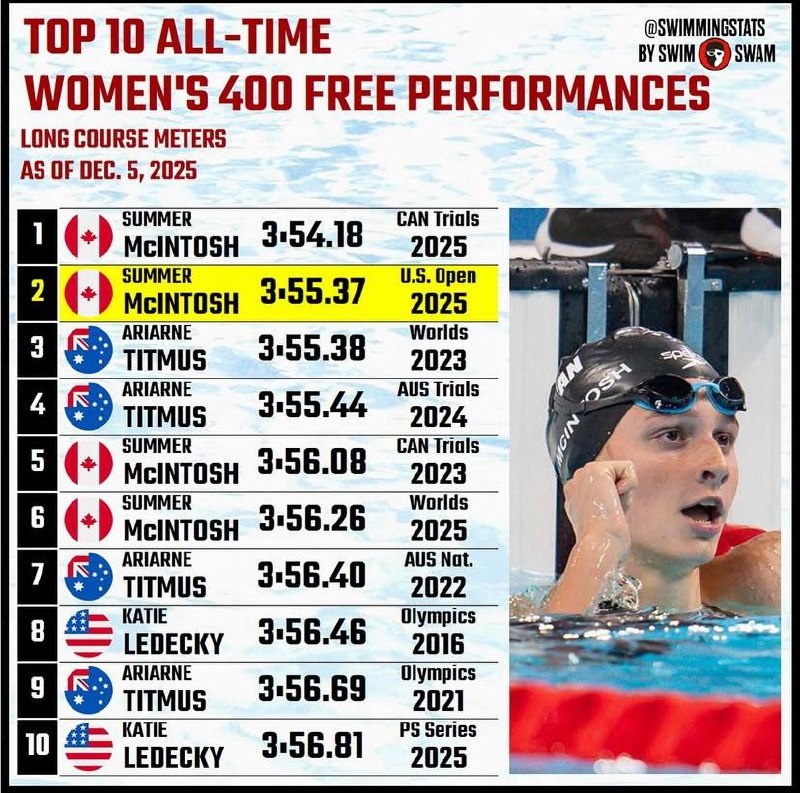 Быстрее Summer McIntosh может плыть только Summer McIntosh — и то, если ей не лень.Все остальные плывут уже не за ней, а после неё