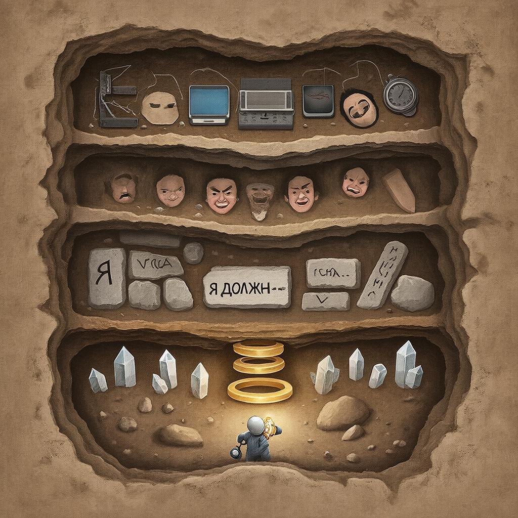 Ваш гнев на коллегу, прокрастинация, немотивированная тревога — это «сломанные станки» психики. Вы чините поверхность (пьёте успокоительное, ругаете себя за лень), но причина — глубже.