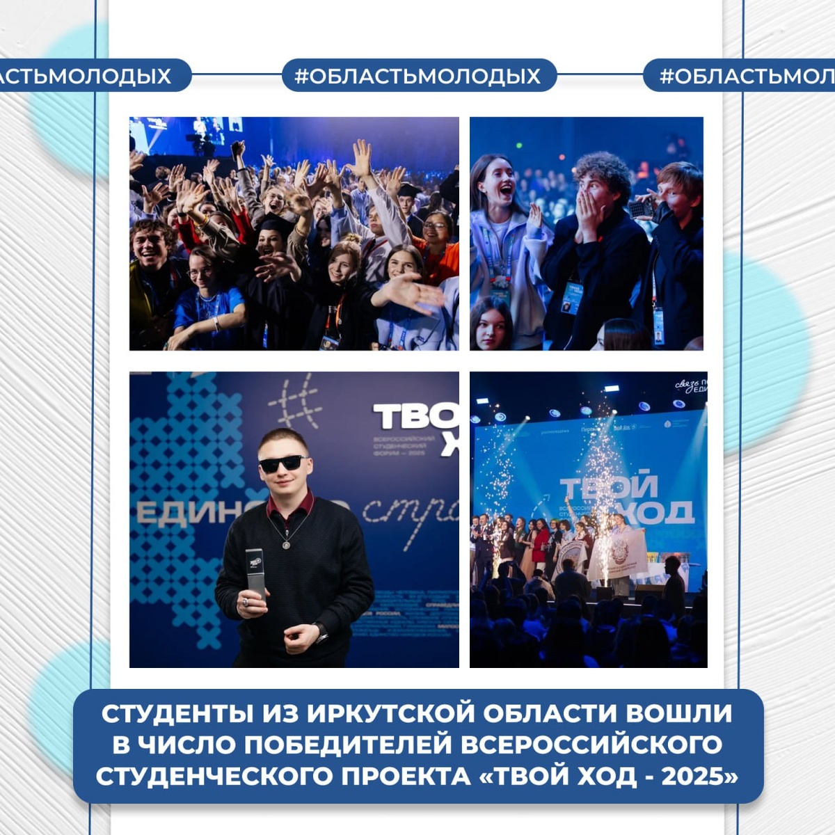 »! Студенты из Иркутской области блестяще выступили в пятом сезоне престижного Всероссийского студенческого проекта «Твой Ход - 2025». Это масштабная площадка для самореализации, где сотни тысяч студентов соревнуются в создании проектов, развитии лидерских качеств и управленческих навыков. Встречаем! Наши чемпионы: ✨ Илья Зуев (Иркутский государственный университет) – победитель трека «Делаю»! Его проект «Интерактивный туристический маршрут «Инновации для всех»» создает доступную среду для незрячих и слабовидящих людей с помощью NFC-технологий. Илья получит премию в 1 000 000 рублей на развитие идеи или личные цели; ✨ Юлия Марданова и Глеб Томилов (Иркутский региональный колледж педагогического образования) – победители трека «Открываю» для первокурсников. Они получат полугодовую стипендию за активную жизненную позицию; ✨ Алёна Головатенко (Иркутский национальный исследовательский технический университет) – отмечена в треке «Определяю» за вклад в обсуждение будущего высшего образов