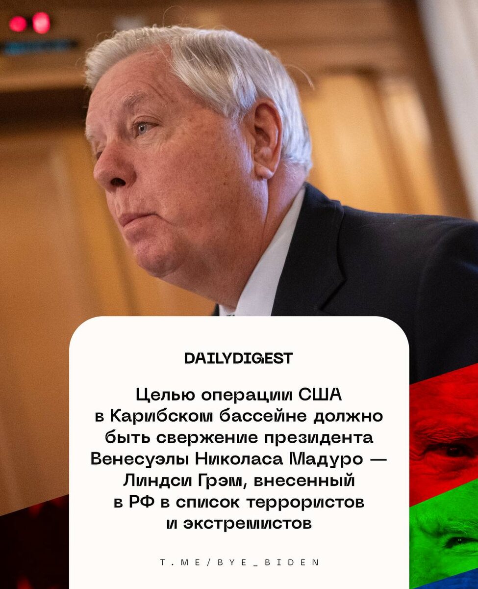 : 🔹Целью операции США в Карибском бассейне должно быть свержение президента Венесуэлы Николаса Мадуро — Линдси Грэм (внесен в РФ в список экстремистов и террористов). 🔹Трамп ввел полный запрет с 1 января на въезд в США для граждан семи государств — Буркина-Фасо, Мали, Нигера, Южного Судана, Сирии, Лаоса и Сьерра-Леоне. 🔹Лукашенко заявил, что если бы вопрос мирного урегулирования на Украине зависел только от Трампа, то конфликт бы давно закончился. 🔹OpenAI представила генератор изображений ChatGPT Images. 🔹Курс доллара может вырасти к 2042 году более чем до 133 рублей. 🔹Трамп объявил власти Венесуэлы иностранной террористической организацией. 👍«БайБайден» в МАХ