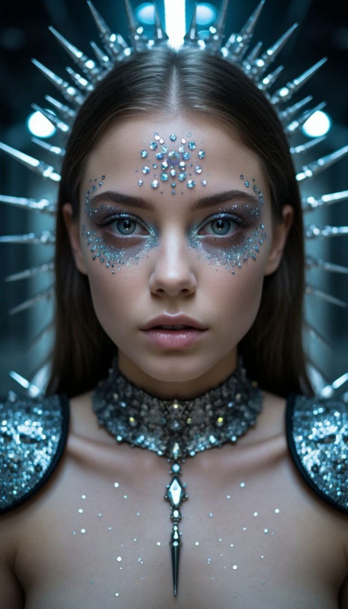 » Крупный план:лицо девушки, полностью покрытое голографическими блёстками, с инопланетными контактными линзами. Из-за её плеча выглядывает шипованный наплечник в форме космического ската. В глазах нет волнения, только спокойное ожидание иного мира за дверью в зал. Решение? 1. Ракурс: Макро на лицо, акцент на глаза (100mm macro) 2. Настройки: f/4 | 1/200s | ISO 1250 3. Свет: Пойманный блик от диско-шара или цветной неон 4. Обработка: Усиление свечения блёсток, проработка деталей, футуристичный цветокор #МитяйРаспиздяй (спросил,не тяжело ли носить «такую ракету» на плече) #ДмитрийФотокор #Косплей #Блёстки #Футуризм 👽