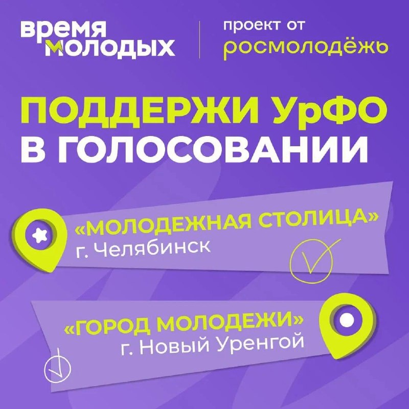 До завершения народного голосования Всероссийской премии молодежных достижений «Время молодых» Росмолодежи осталось два дня. В специальных номинациях участвуют города УФО: 🔹Челябинск претендует на звание «Молодежная столица» 🔹Новый Уренгой — «Город молодежи» Тюменцы могут поддержать города по ссылке. Голосование проводится до 19 декабря. 👍 Единая Россия | Тюменская область